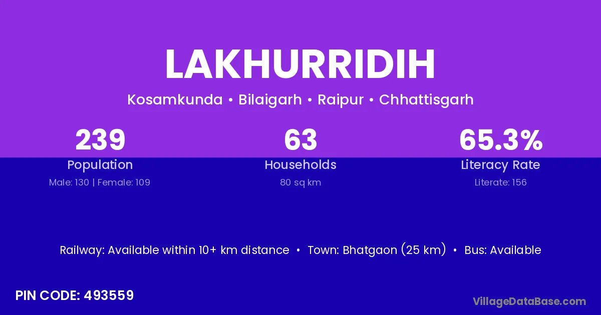 According to Census 2011 information, the village code of Lakhurridih village is 493559.