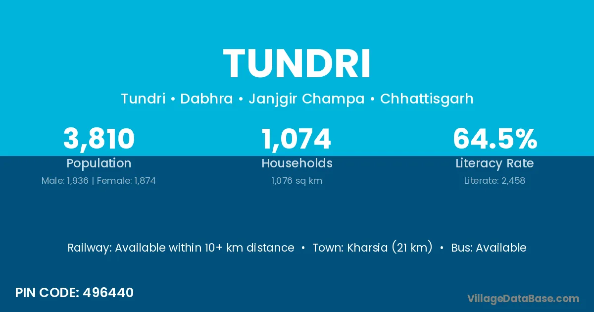According to Census 2011 information, the village code of Tundri village is 496440.