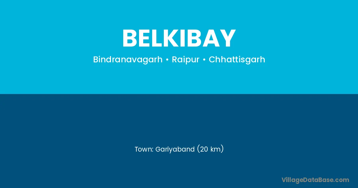Gariyaband (20 km) is the nearest town to Belkibay village for major economic activities and is located approximately 20 km away.