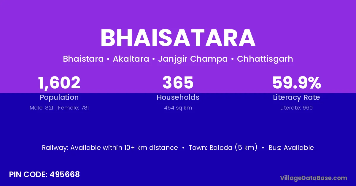 Gariyaband (22 km) is the nearest town to Bhaisatara village for major economic activities and is located approximately 22 km away.