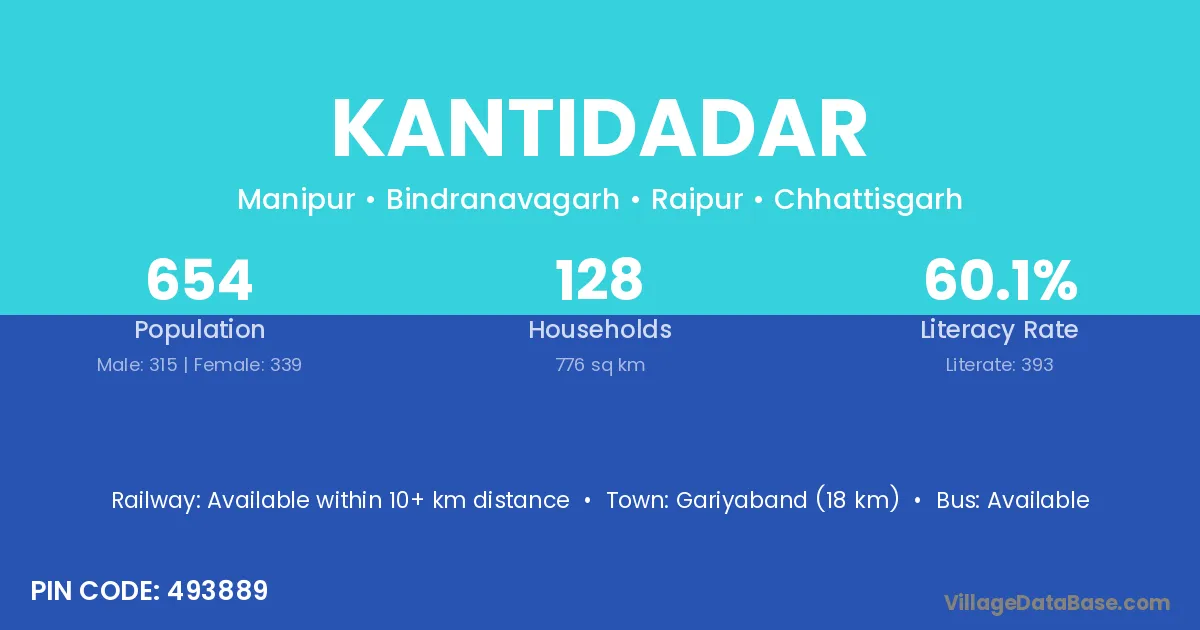 Gariyaband (18 km) is the nearest town to Kantidadar village for major economic activities and is located approximately 18 km away.
