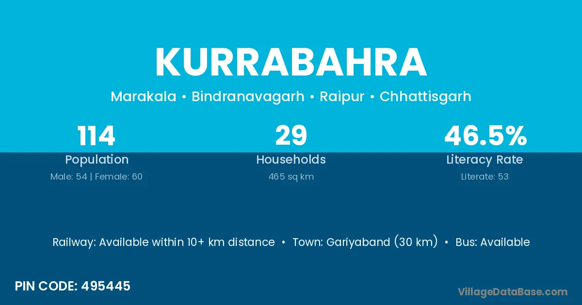 Gariyaband (30 km) is the nearest town to Kurrabahra village for major economic activities and is located approximately 30 km away.