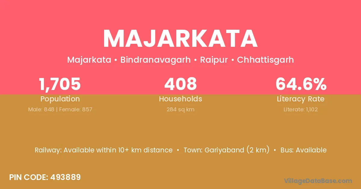 Gariyaband (2 km) is the nearest town to Majarkata village for major economic activities and is located approximately 2 km away.