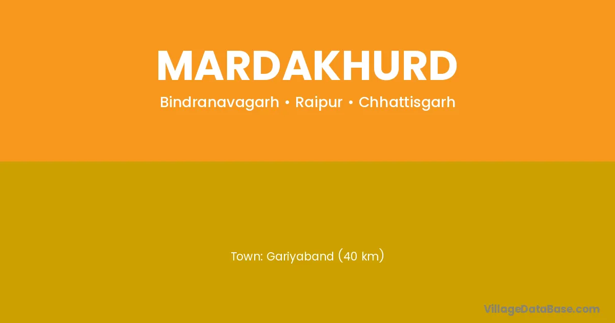 Gariyaband (40 km) is the nearest town to Mardakhurd village for major economic activities and is located approximately 40 km away.