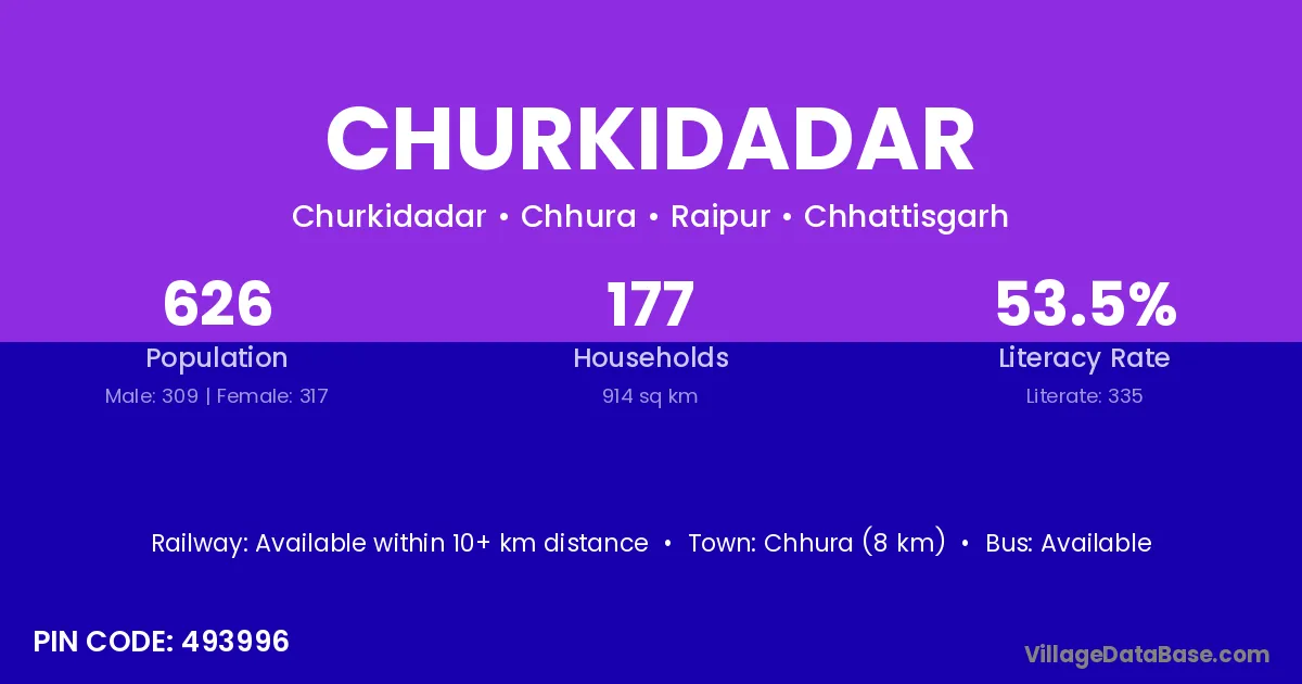 Churkidadar village has a total population of 626 people, of which 309 are males and 317 are females.