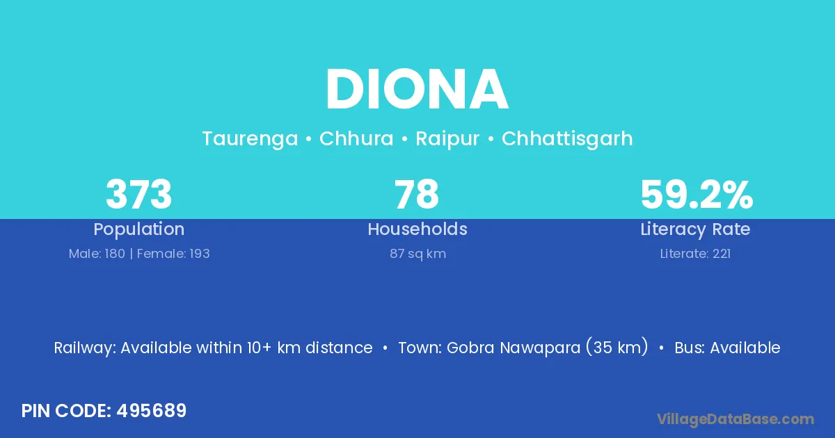 Gobra Nawapara (35 km) is the nearest town to Diona village for major economic activities and is located approximately 35 km away.