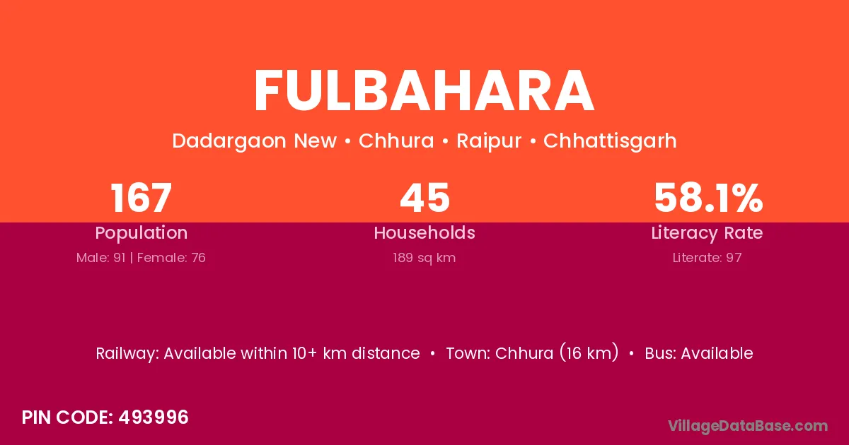 Chhura (16 km) is the nearest town to Fulbahara village for major economic activities and is located approximately 16 km away.