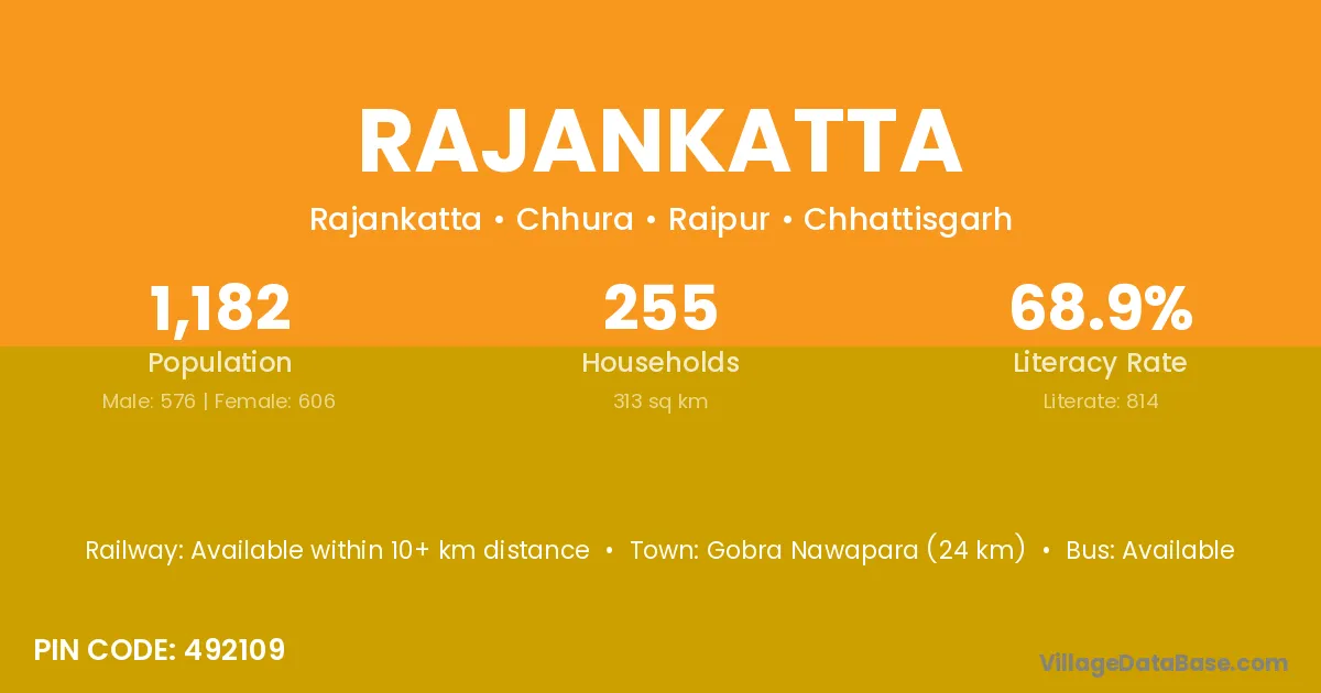 Gobra Nawapara (24 km) is the nearest town to Rajankatta village for major economic activities and is located approximately 24 km away.