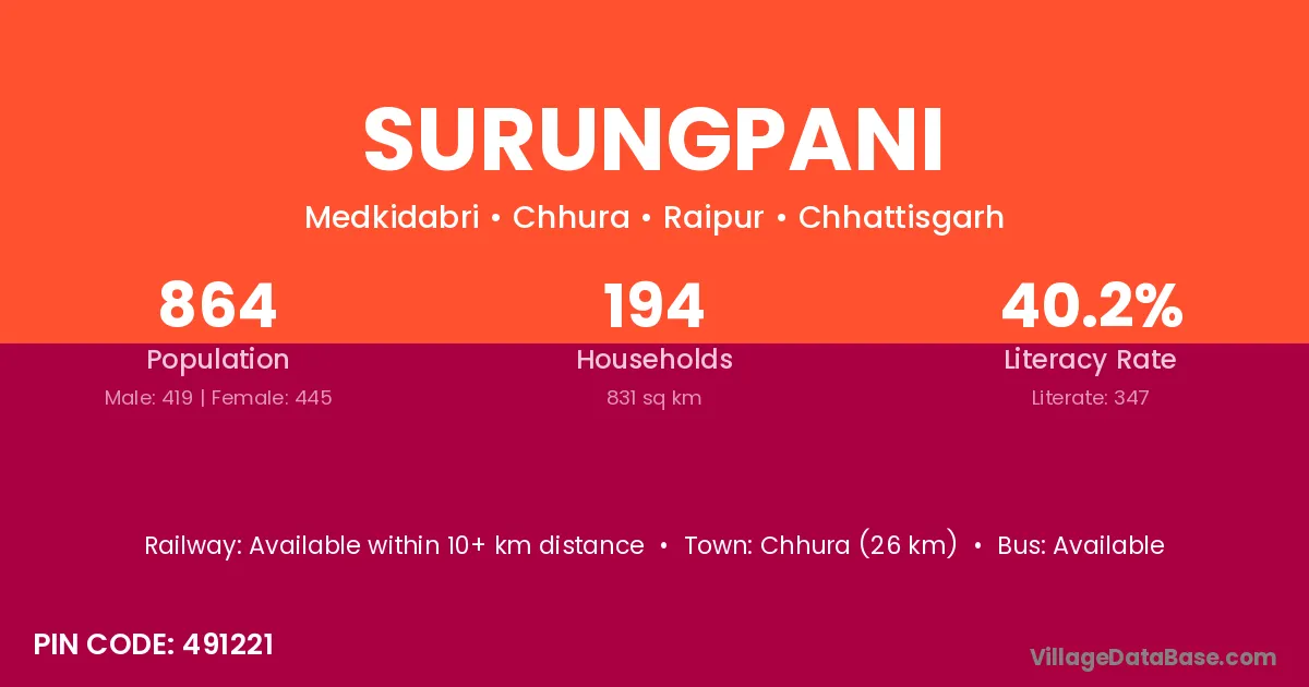 According to Census 2011 information, the village code of Surungpani village is 491221.