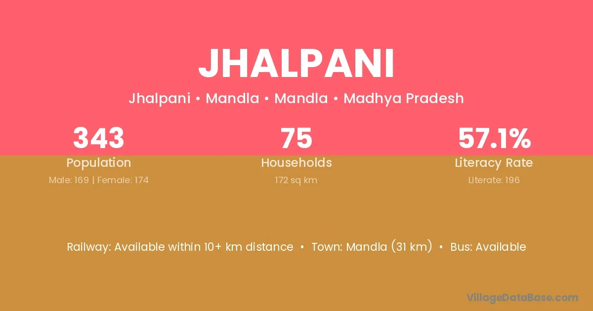 Kasdol (16 km) is the nearest town to Jhalpani village for major economic activities and is located approximately 16 km away.
