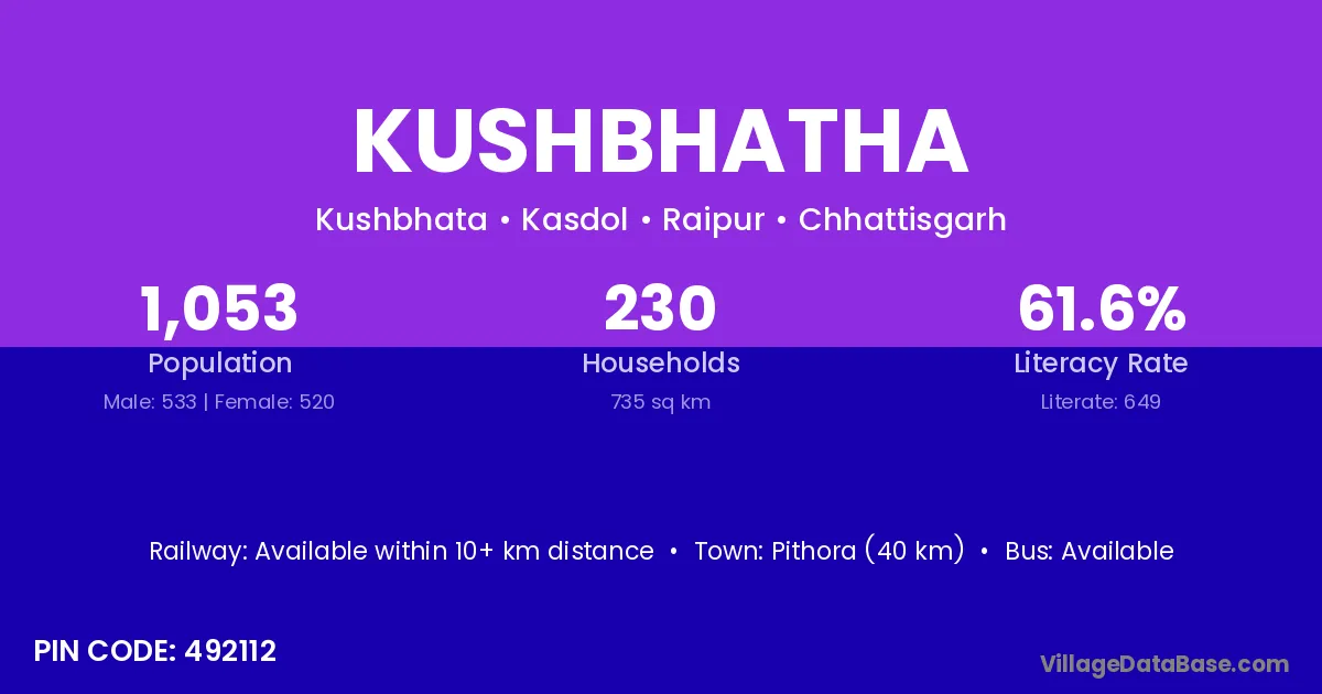 According to Census 2011 information, the village code of Kushbhatha village is 492112.