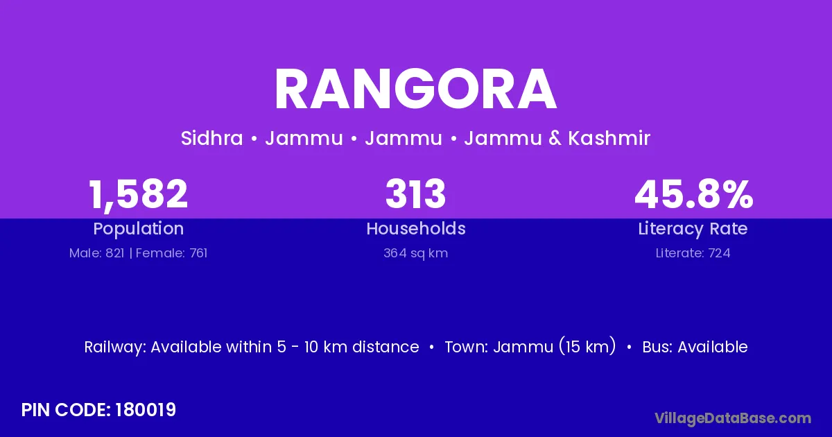 Rangora village has a total population of 1,184 people, of which 587 are males and 597 are females.