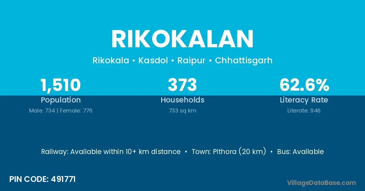 Pithora (20 km) is the nearest town to Rikokalan village for major economic activities and is located approximately 20 km away.