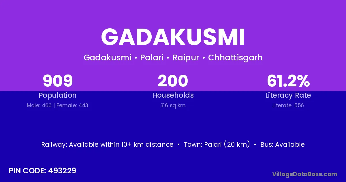According to Census 2011 information, the village code of Gadakusmi village is 493229.