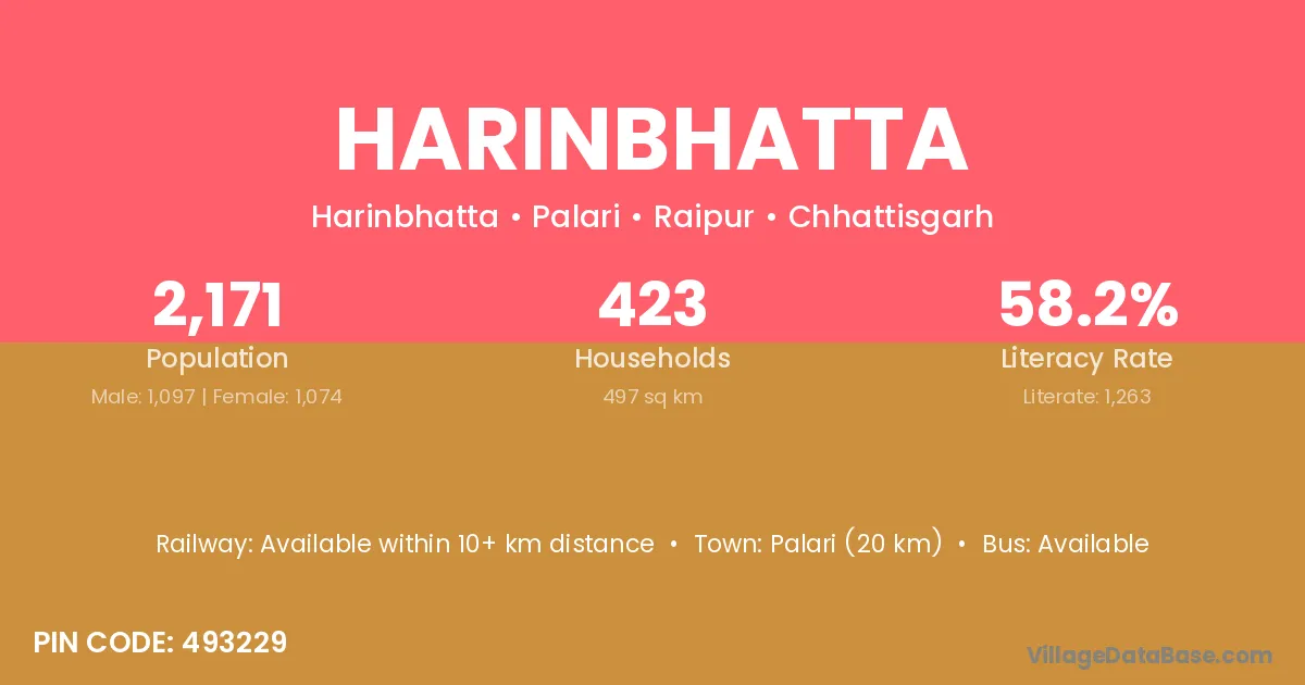 According to Census 2011 information, the village code of Harinbhatta village is 493229.