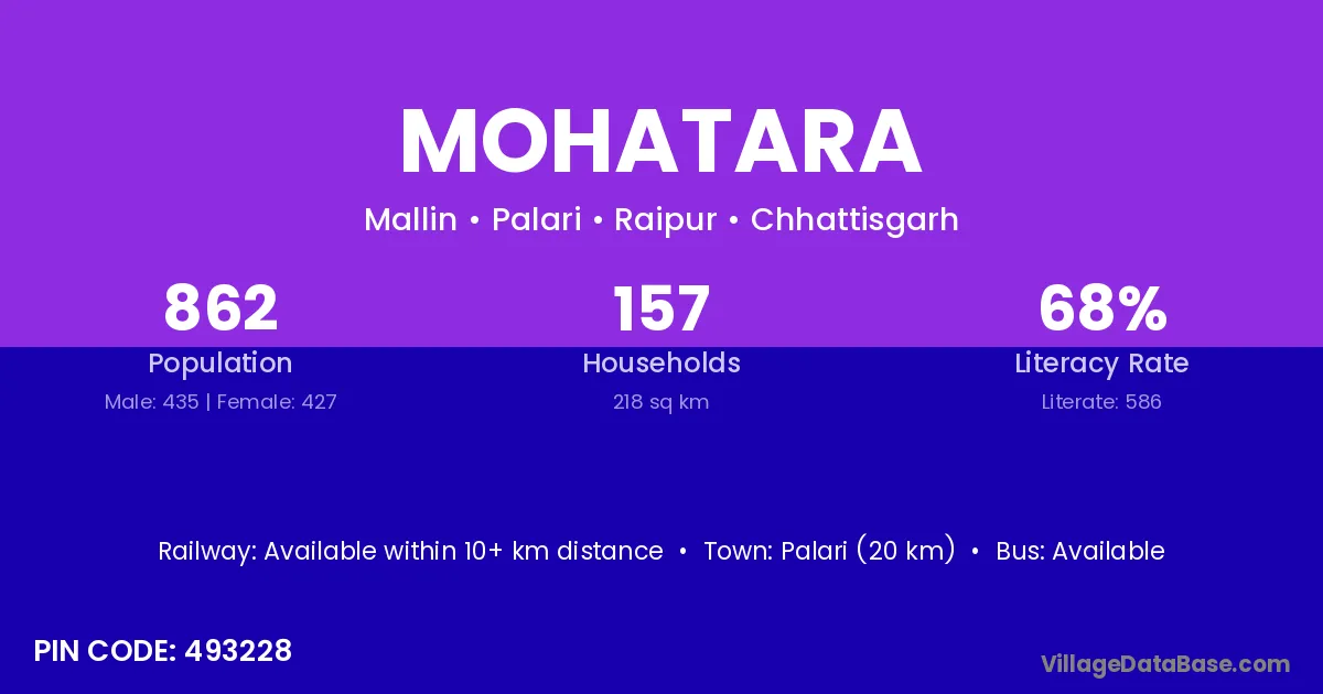 According to Census 2011 information, the village code of Mohatara village is 493228.