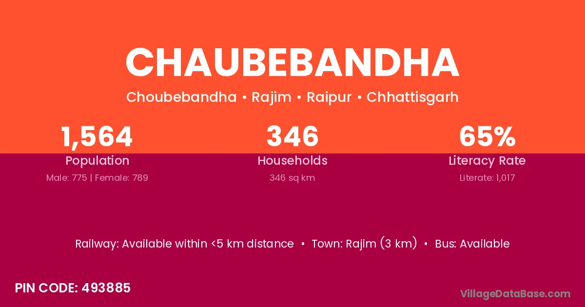 Rajim (3 km) is the nearest town to Chaubebandha village for major economic activities and is located approximately 3 km away.