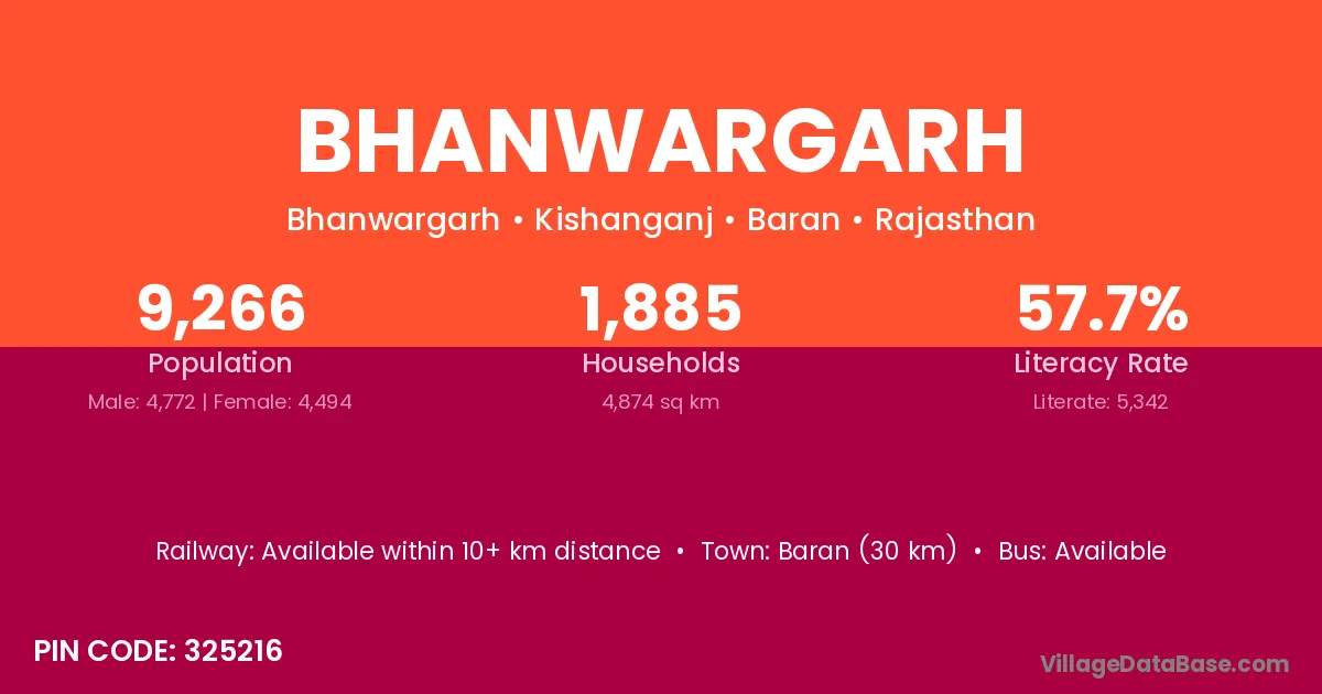 Bhatapara (20 km) is the nearest town to Bhanwargarh village for major economic activities and is located approximately 20 km away.