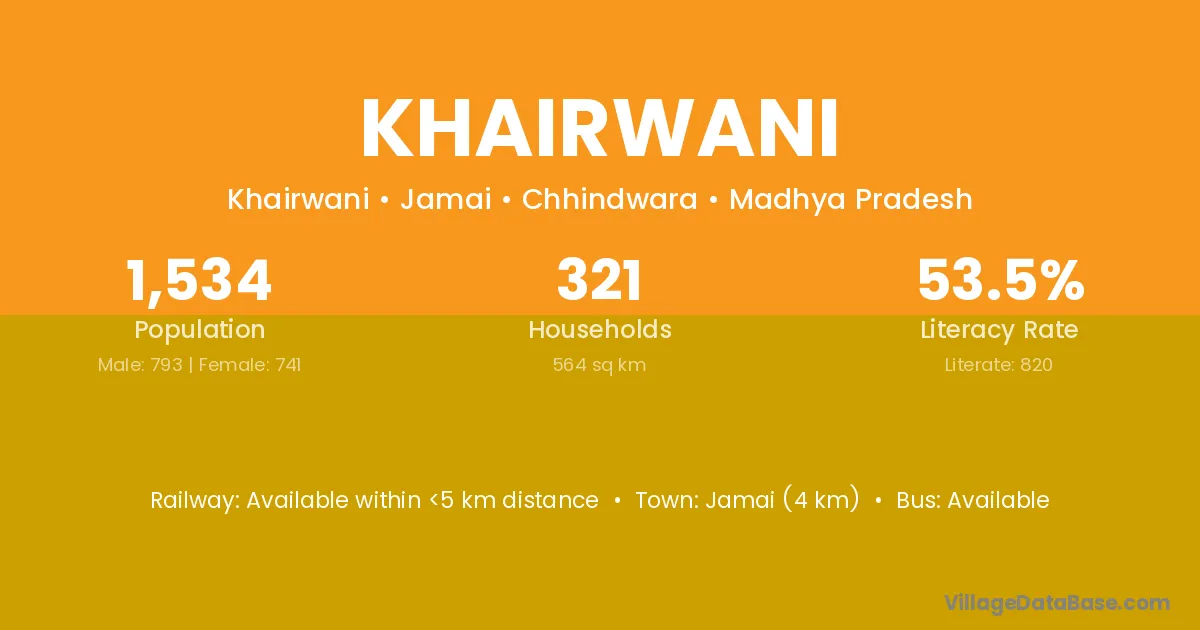 According to Census 2011 information, the village code of Khairwani village is 494221.