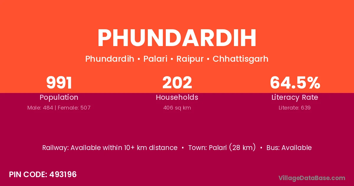Tilda Newra (15 km) is the nearest town to Phundardih village for major economic activities and is located approximately 15 km away.