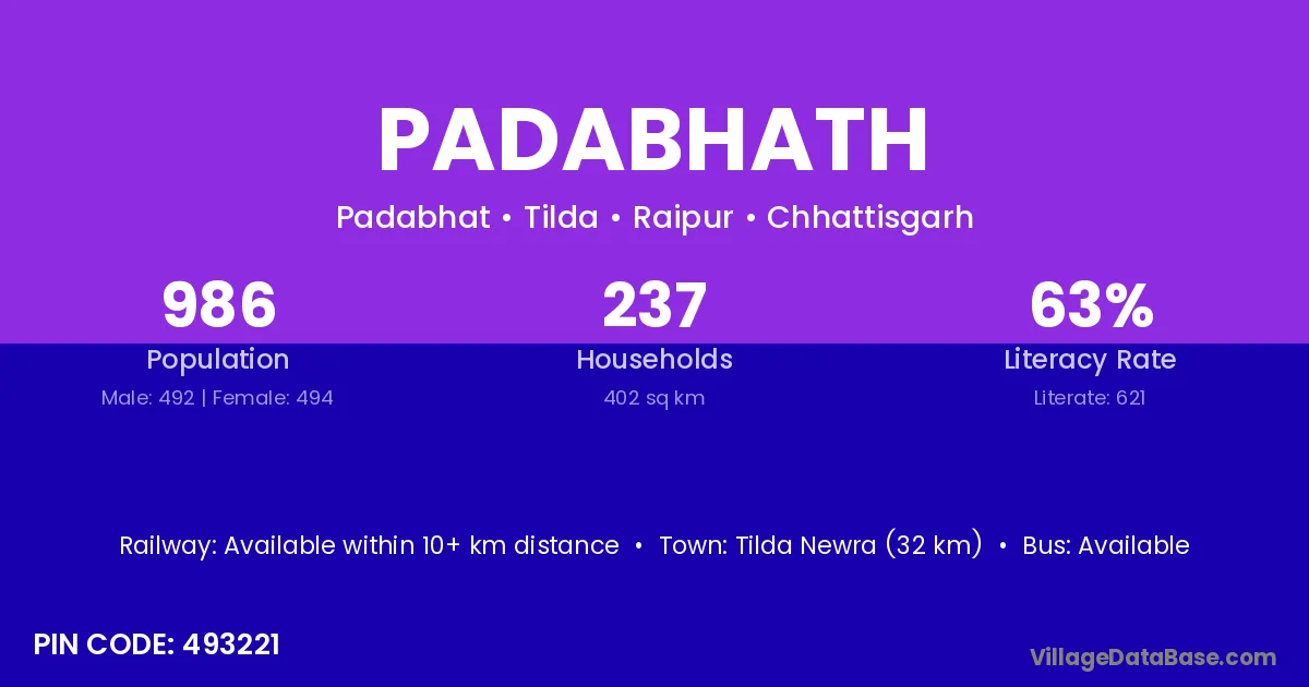 Tilda Newra (32 km) is the nearest town to Padabhath village for major economic activities and is located approximately 32 km away.