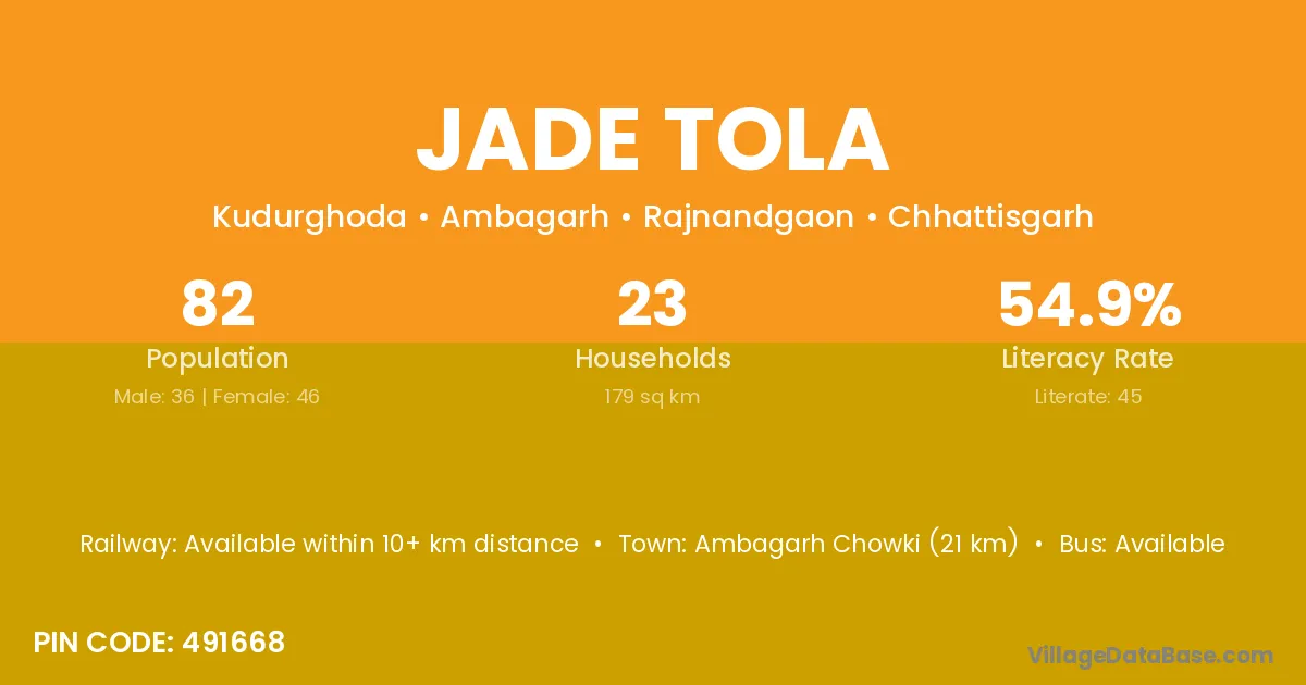 According to Census 2011 information, the village code of Jade Tola village is 491668.