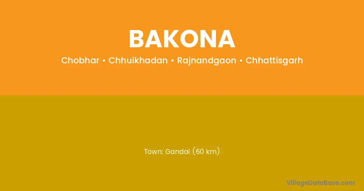 Gandai (60 km) is the nearest town to Bakona village for major economic activities and is located approximately 60 km away.