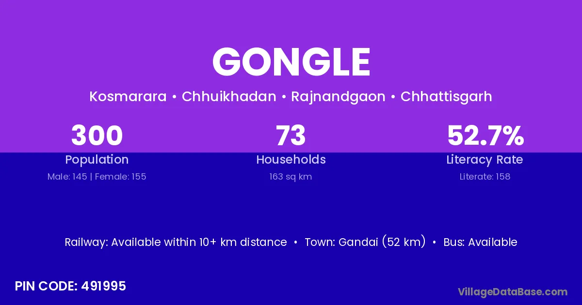Gongle village is located in the Chhuikhadan Tehsil of the Rajnandgaon district in Chhattisgarh .