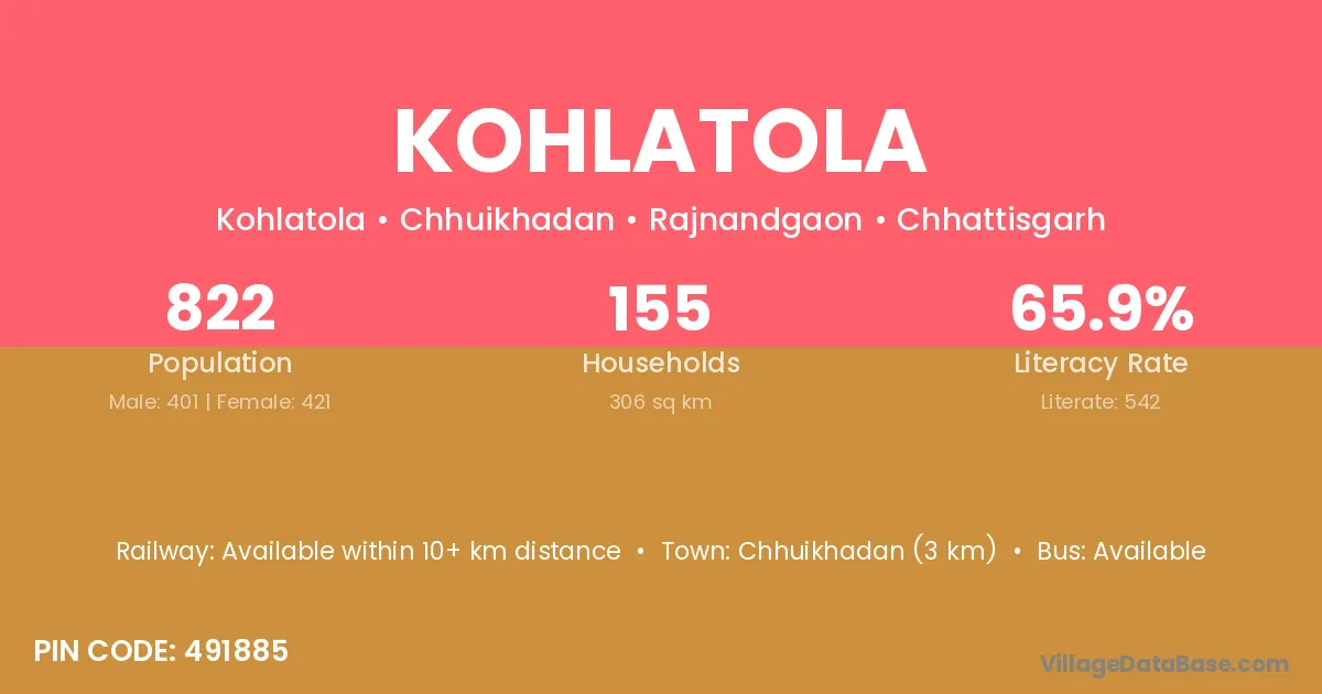 Kohlatola village is located in the Chhuikhadan Tehsil of the Rajnandgaon district in Chhattisgarh .