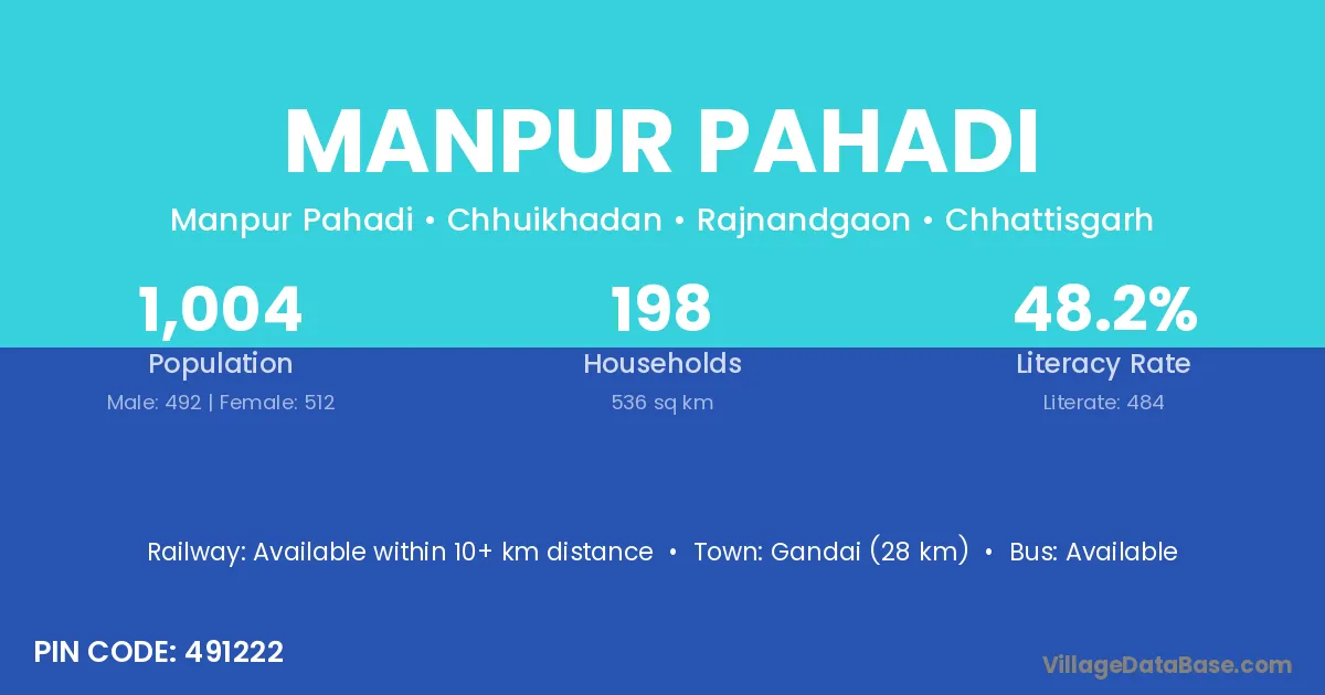 According to Census 2011 information, the village code of Manpur Pahadi village is 491222.