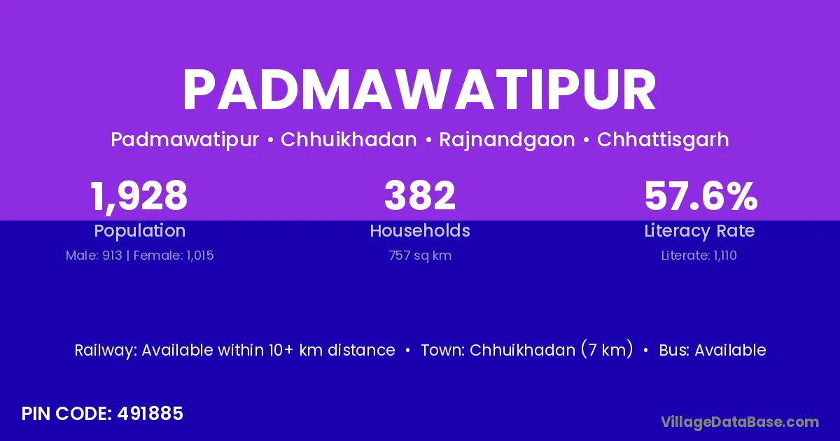Chhuikhadan (7 km) is the nearest town to Padmawatipur village for major economic activities and is located approximately 7 km away.