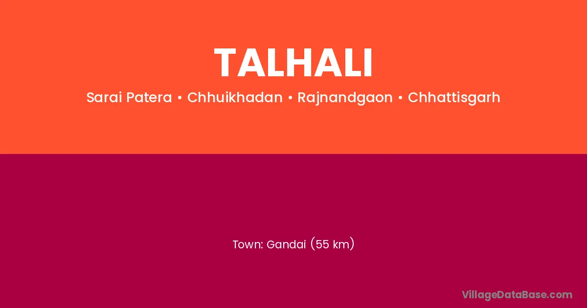 Gandai (55 km) is the nearest town to Talhali village for major economic activities and is located approximately 55 km away.