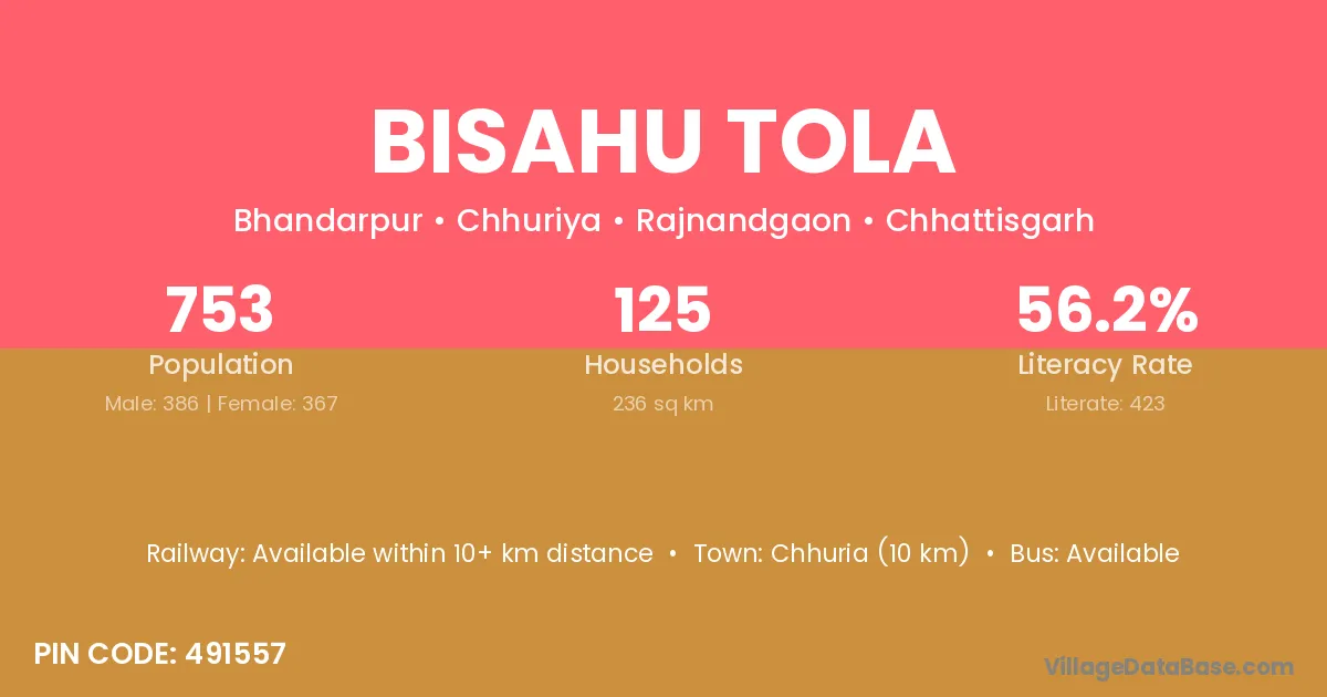 Bisahu Tola village is located in the Chhuriya Tehsil of the Rajnandgaon district in Chhattisgarh .