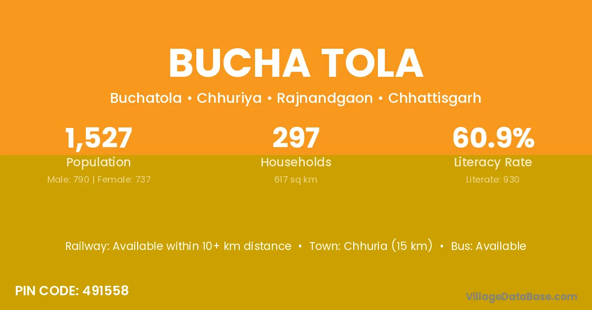 Bucha Tola village is located in the Chhuriya Tehsil of the Rajnandgaon district in Chhattisgarh .