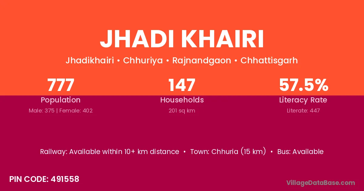 According to Census 2011 information, the village code of Jhadi Khairi village is 491558.