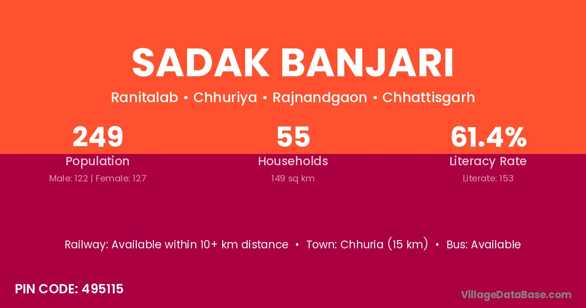 Sadak Banjari village has a total population of 249 people, of which 122 are males and 127 are females.