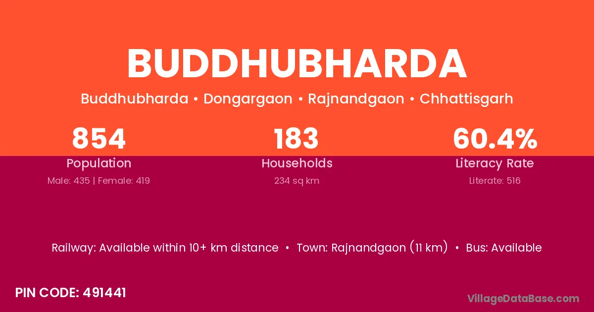 Rajnandgaon (11 km) is the nearest town to Buddhubharda village for major economic activities and is located approximately 11 km away.