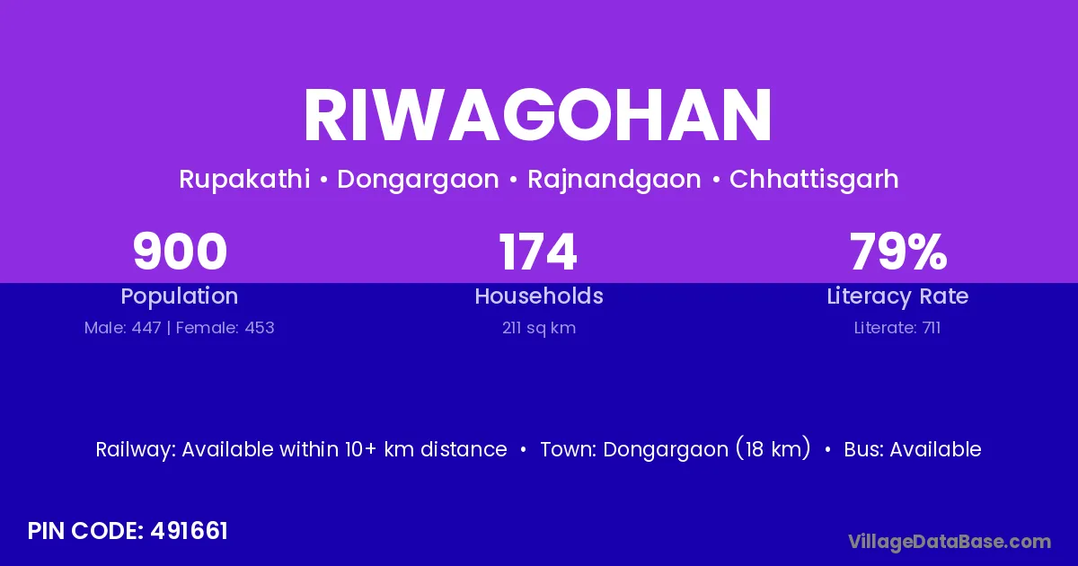 Dongargaon (18 km) is the nearest town to Riwagohan village for major economic activities and is located approximately 18 km away.