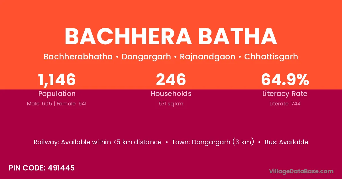 Dongargarh (3 km) is the nearest town to Bachhera Batha village for major economic activities and is located approximately 3 km away.