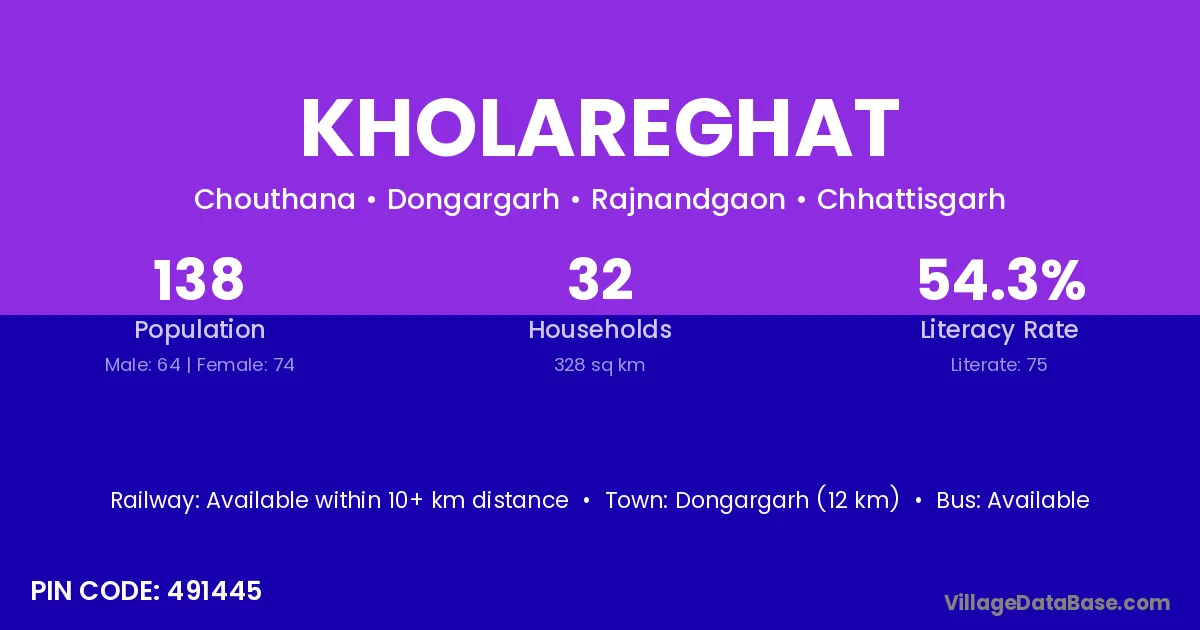 According to Census 2011 information, the village code of Kholareghat village is 491445.