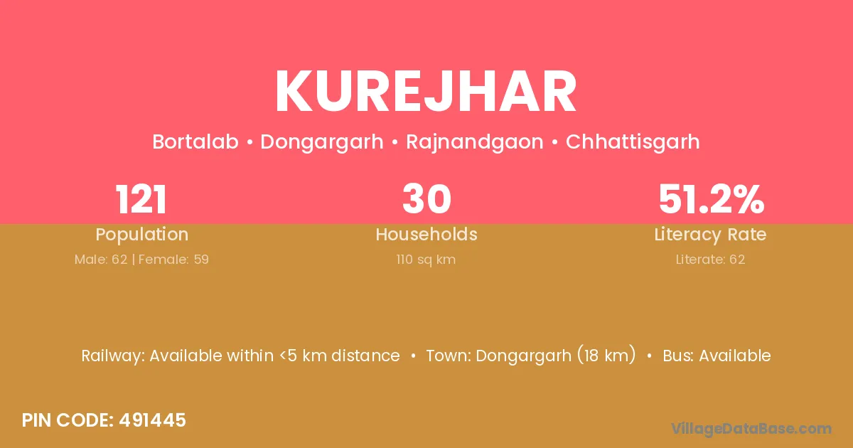 Dongargarh (18 km) is the nearest town to Kurejhar village for major economic activities and is located approximately 18 km away.