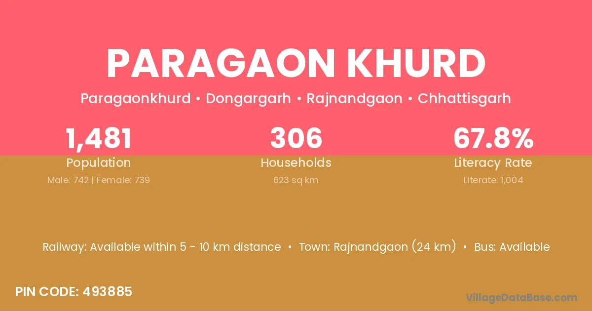 Rajnandgaon (24 km) is the nearest town to Paragaon Khurd village for major economic activities and is located approximately 24 km away.