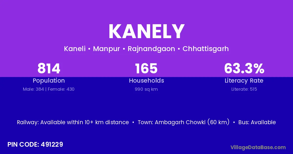 Ambagarh Chowki (60 km) is the nearest town to Kanely village for major economic activities and is located approximately 60 km away.