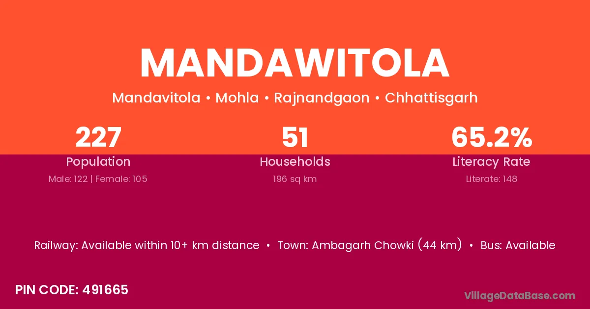Mandawitola village has a total population of 227 people, of which 122 are males and 105 are females.