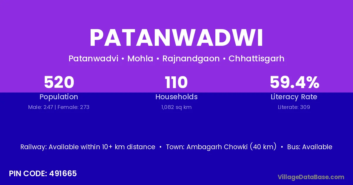 Patanwadwi village has a total population of 520 people, of which 247 are males and 273 are females.
