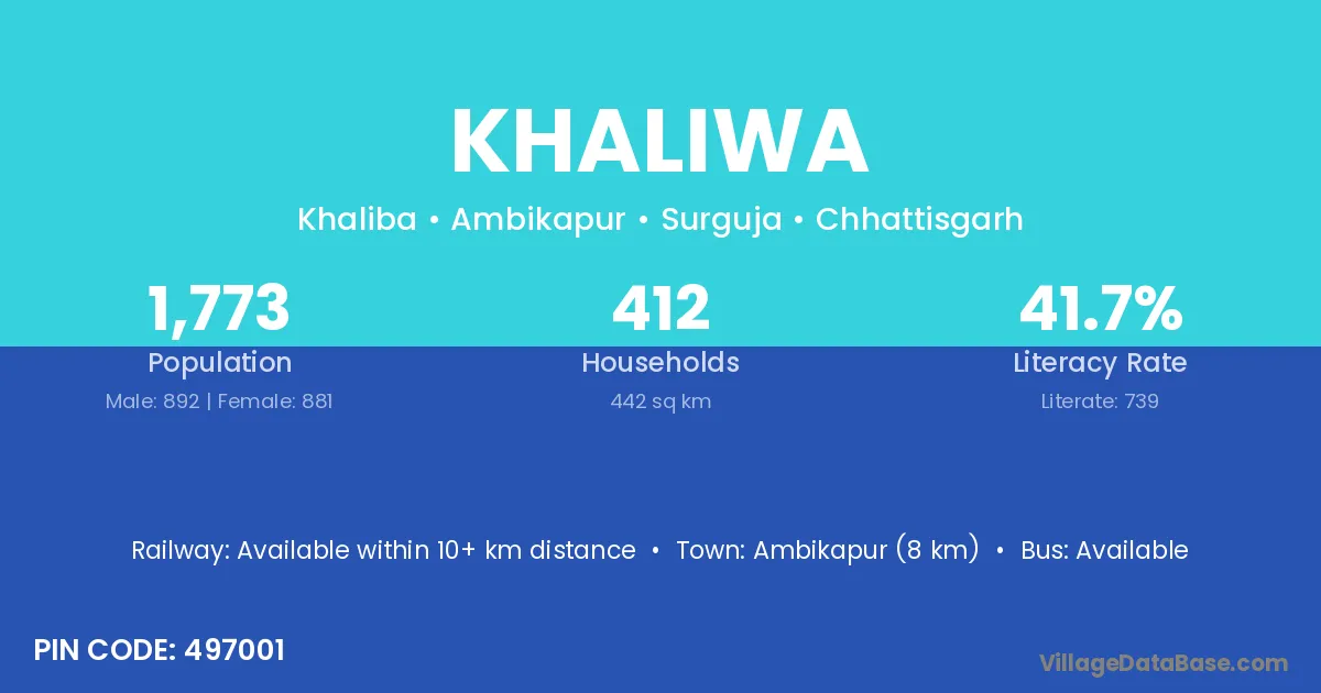 Ambikapur (8 km) is the nearest town to Khaliwa village for major economic activities and is located approximately 8 km away.