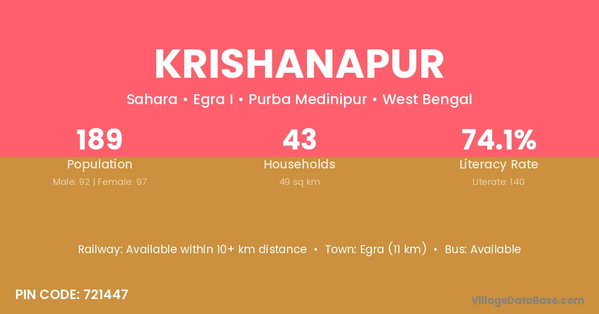 The literacy rate of Krishanapur village is 56.15%. Male literacy stands at 67.95% and female literacy at 42.76%.