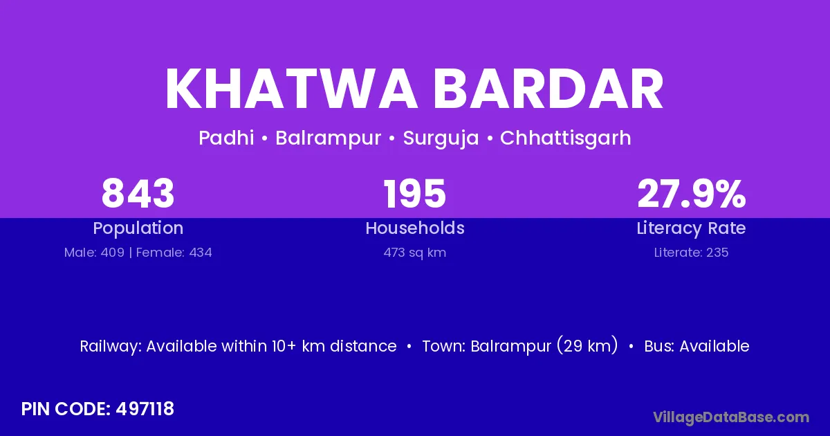 According to Census 2011 information, the village code of Khatwa Bardar village is 497118.