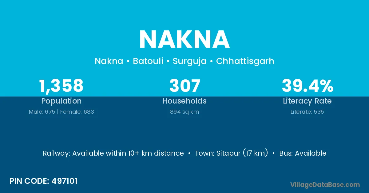 Sitapur (17 km) is the nearest town to Nakna village for major economic activities and is located approximately 17 km away.