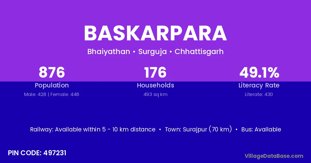 Baskarpara village is located in the Bhaiyathan Tehsil of the Surguja district in Chhattisgarh .